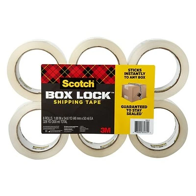 Scotch Box Lock Packaging Tape sticks instantly to any box! It has the power of extreme grip to ensure boxes stay securely sealed, even during rough handling. Its new advanced adhesive creates a secure seal over box edges, and its thickness and durability reduces splitting and tearing and makes it easier to find the start of the roll. This tape can be used to seal any type of box, including harder-to-stick to 100% recycled boxes.