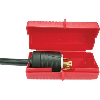 To lock out, secure with padlock and lockout tag (both sold separately) to render the plug unusable