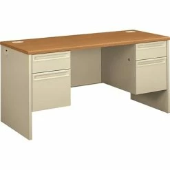 Office Desks HON® 38000 Series Kneespace Credenza With Locks, Harvest/Putty, 29 1/2″H X 60″W X 24″D