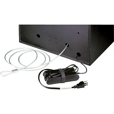 The SentrySafe Electronic Lock Safety Safe features power cord access for security of electronics even while charging. The removable shelf helps keep valuables organized and the carpeted interior helps prevent scratching of valuables of all kinds. The large 1.2-cubic-foot capacity allows even a 17-inch laptop to be stored securely.