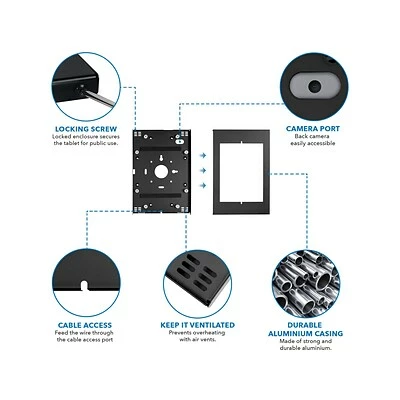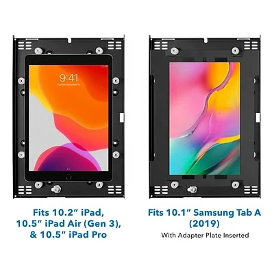 The Mount-It! Secure iPad tablet wall mount is a perfect solution for point-of-sale, trade show booths, retail displays, digital signage, check-in stands, conference room management, and more. This low-profile secure enclosure for iPad gives you mounting versatility: you can hang the frame via the VESA pattern either flush directly to a wall or to any VESA-compatible stand or fixture. Compatible with multiple tablet sizes, so you don’t need to replace the mount if you upgrade your device. Constructed from high-grade steel, the sleek finish and slim profile keep it looking modern and aesthetically appealing for any installation or environment.