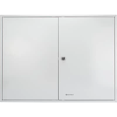 The 320 Position Key Cabinet from Barska features numbered key hooks and numbered key tags that make key organization easy and convenient. The twO-sided indexing chart has ample room to document the key’s hook position corresponding lock, and a drop-in plastic sleeve tethered to the hinge inside the safe provides a hands-free reference. The safe has four pre-drilled mounting holes and included hardware for installation. The safe walls and door are constructed of 0.8mm solid steel and finished with a gray coating.