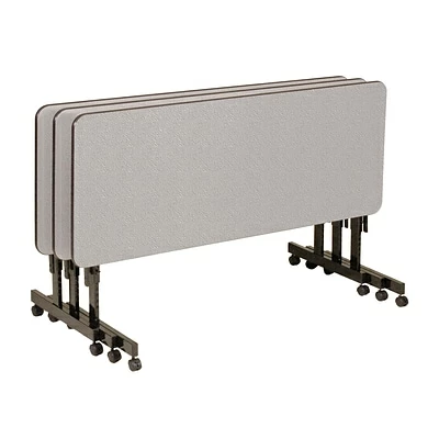 Casters allow easy movement from storage to setup, then lock to hold table in place