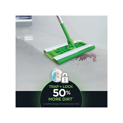 The Swiffer Heavy-Duty wet mop textured cloth traps and locks dirt deep inside. The cloth is safe to use on all finished floors and has a scrubbing strip to remove tough spots. Dissolves dirt and grime better than a mop. Unique formula traps and locks dirt deep inside the cloth.